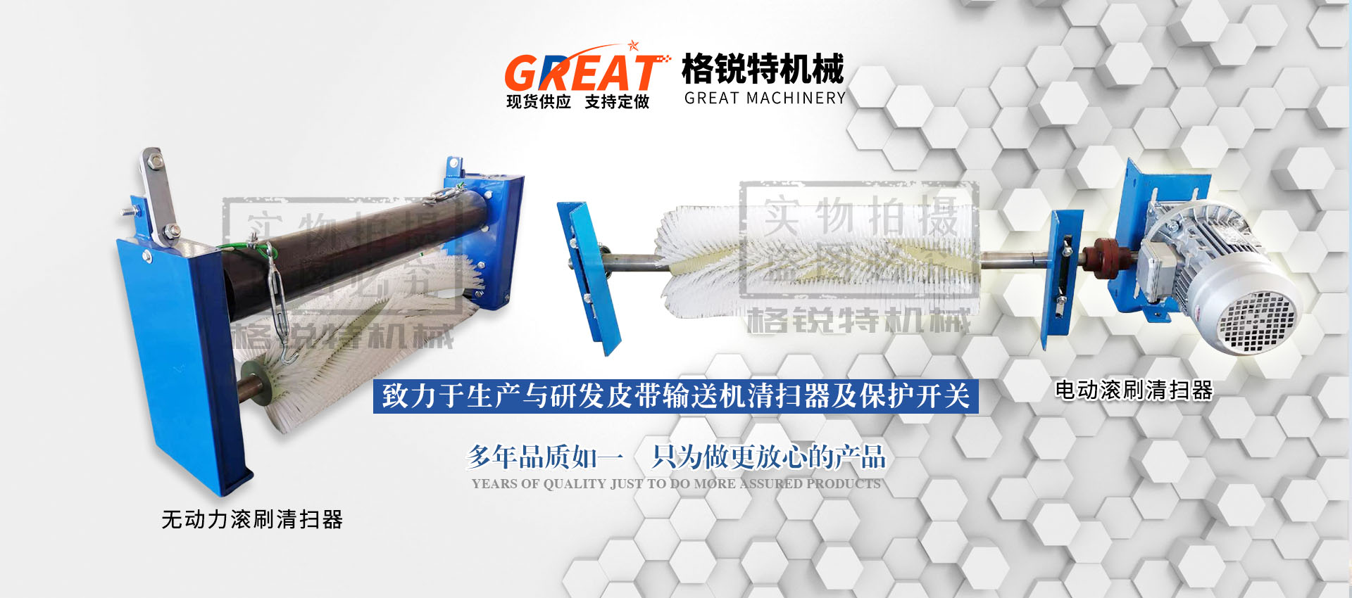 衡水格銳特機(jī)械科技有限公司常年致力于生產(chǎn)與研發(fā)皮帶輸送機(jī)清掃器及保護(hù)開關(guān),其中主營聚氨酯清掃器,合金清掃器,電動(dòng)滾刷清掃器,機(jī)械式滾刷清掃器,緩沖床,緩沖條,雙向拉繩開關(guān),兩級跑偏開關(guān),打滑檢測器,料流檢測器等保護(hù)開關(guān),常年銷往各大水泥廠,煤礦廠,電廠,輸送機(jī)廠家,質(zhì)量優(yōu)越,價(jià)格實(shí)惠,望各大領(lǐng)導(dǎo)及同行來廠參觀指導(dǎo),期待您的光臨!!!